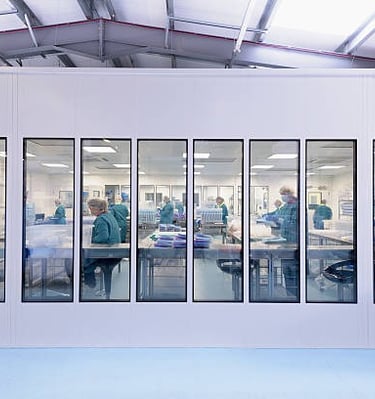 Montagem de salas limpas para indústrias farmacêuticas e ambientes controlados.